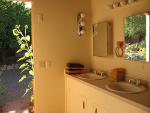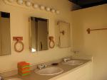 Our restroom has two toilets, two showers, and 3 sinks, and it is possible you will have to wait your turn. Click below for images of our restroom. |